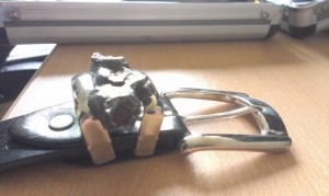 Basically, I went on ebay and bought a small meteorite (There are national organisations for confirming their authenticity and origins). Then I soldered (welded) it to a normal waist belt I had in the house. Behold: